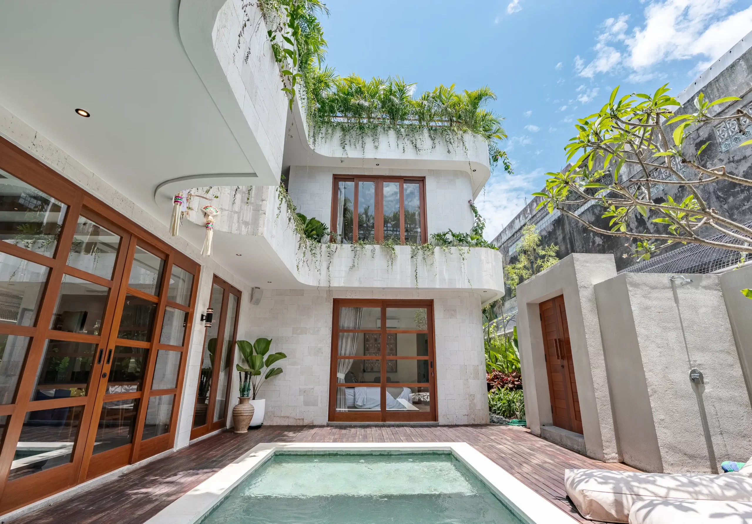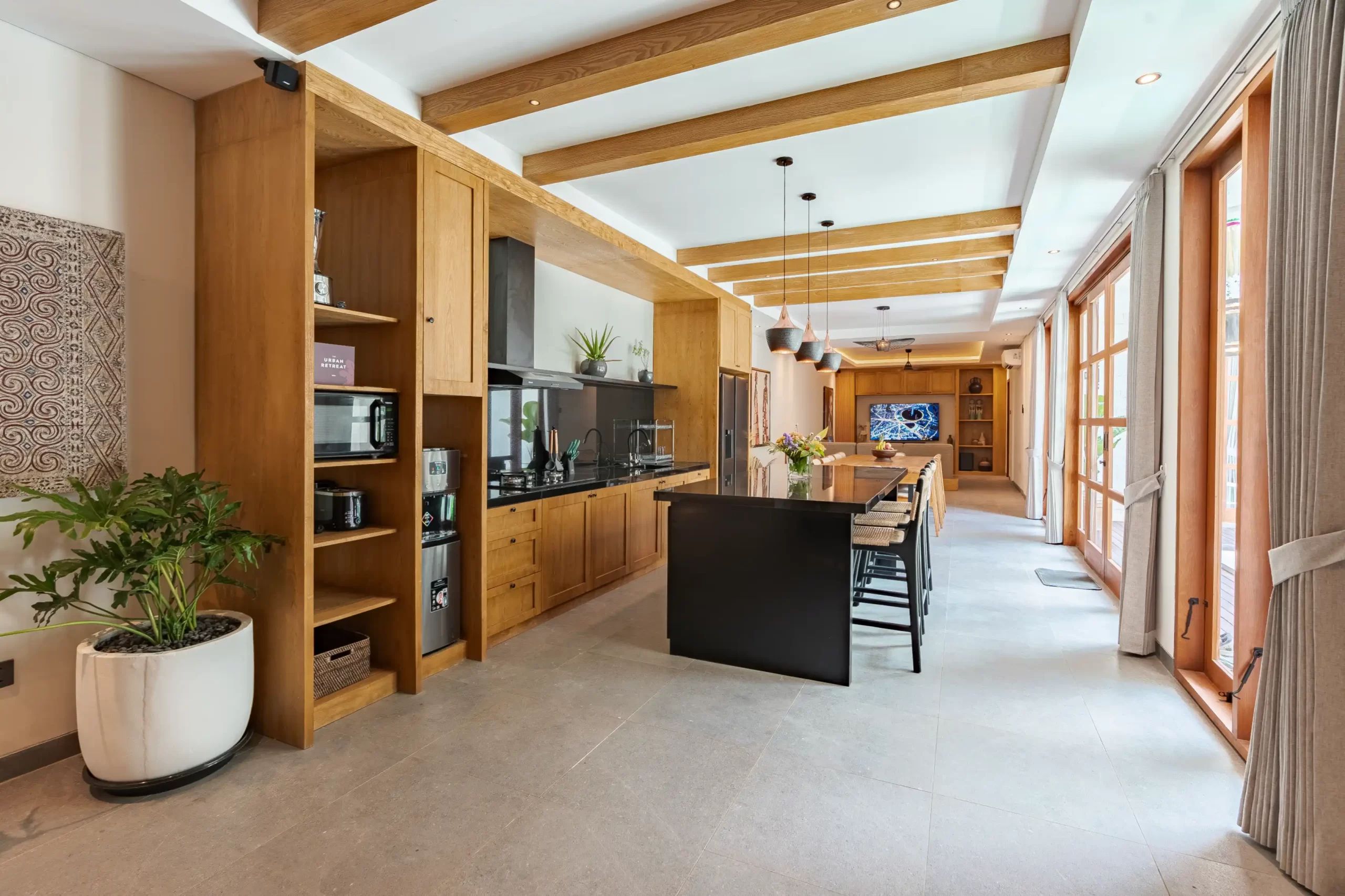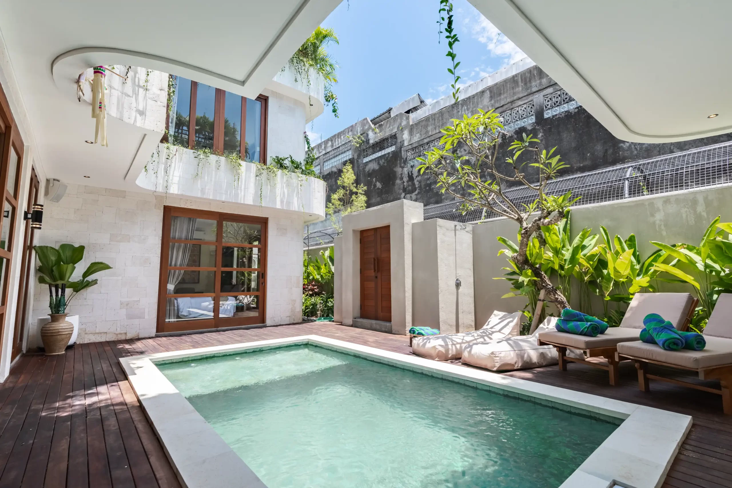 The Urban Seminyak Villa Dua is a stunning 5-bedroom luxury villa in the heart of Seminyak, Bali. As the largest in the Urban Retreats collection, it’s designed for families and groups seeking space, style, and comfort. Featuring five spacious ensuite bedrooms—three with king beds and two with twins—the villa accommodates up to 15 guests with ease. The master suite includes a private bathtub for ultimate relaxation, while each ensuite bathroom offers rainfall and handheld showers. Perfectly located near Seminyak’s beaches, restaurants, and boutiques, this modern retreat combines tropical serenity with urban sophistication.