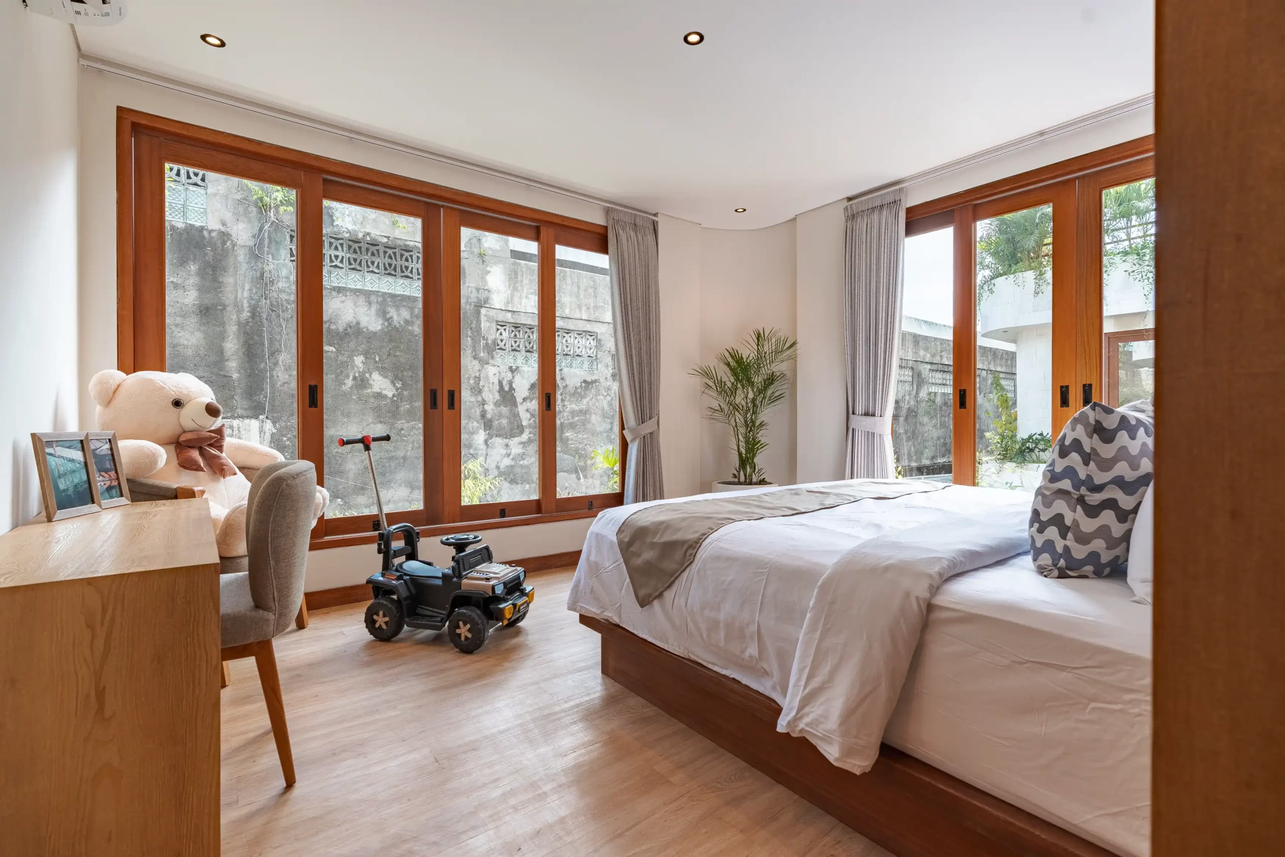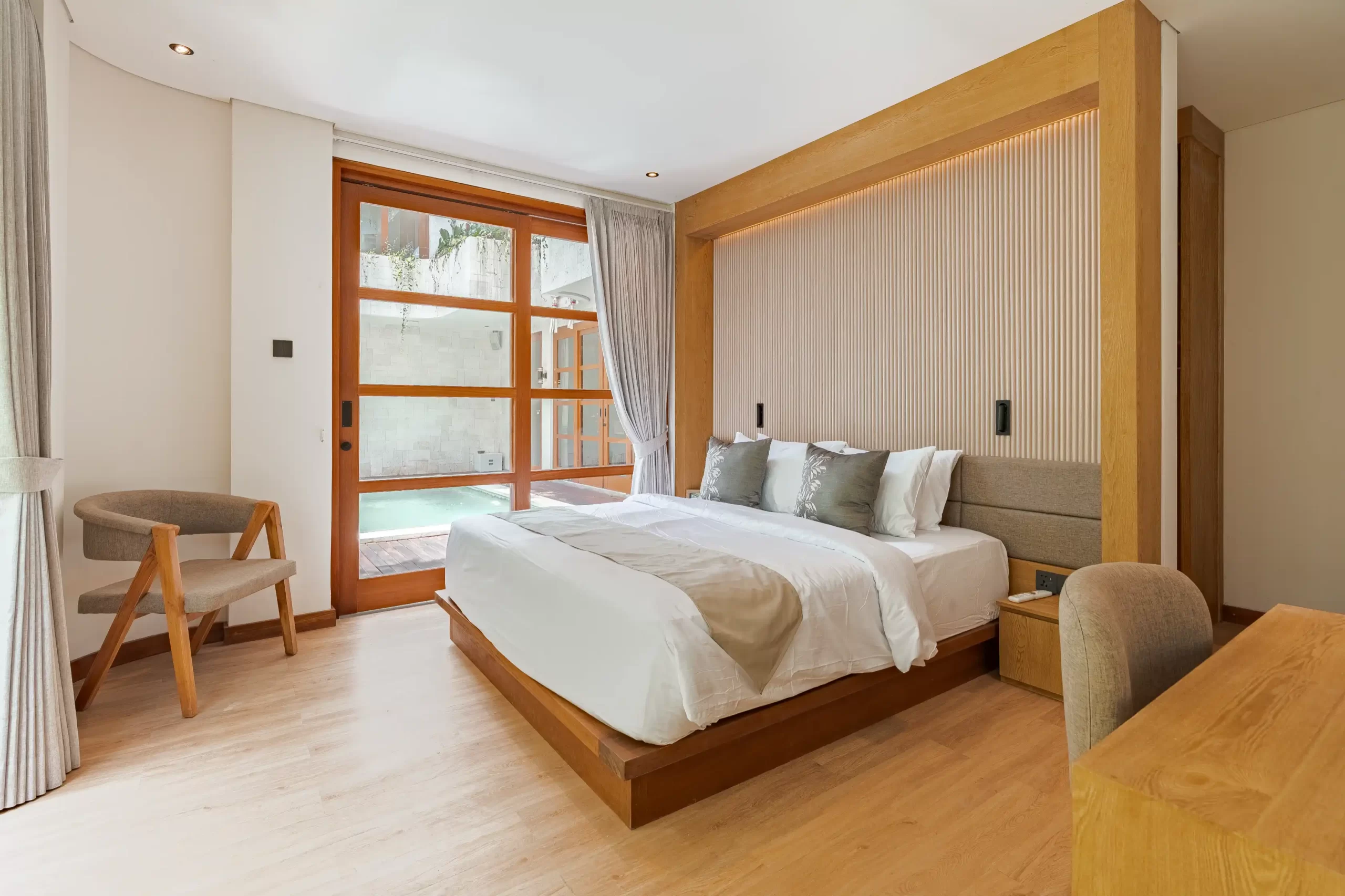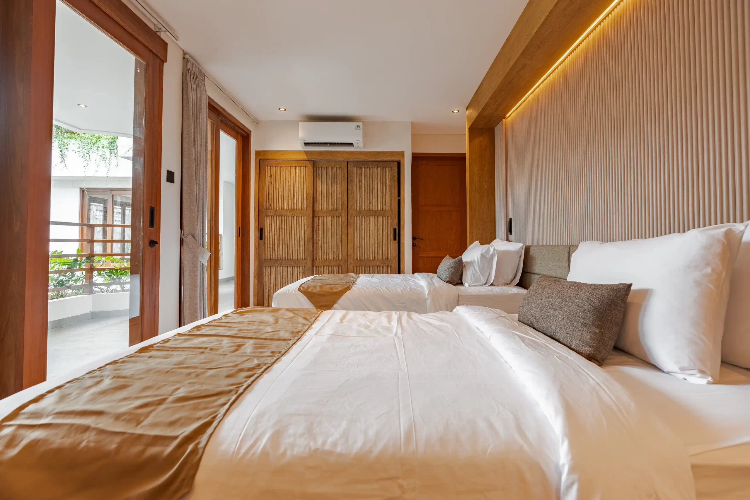 The Urban Seminyak Villa Dua is a stunning 5-bedroom luxury villa in the heart of Seminyak, Bali. As the largest in the Urban Retreats collection, it’s designed for families and groups seeking space, style, and comfort. Featuring five spacious ensuite bedrooms—three with king beds and two with twins—the villa accommodates up to 15 guests with ease. The master suite includes a private bathtub for ultimate relaxation, while each ensuite bathroom offers rainfall and handheld showers. Perfectly located near Seminyak’s beaches, restaurants, and boutiques, this modern retreat combines tropical serenity with urban sophistication.