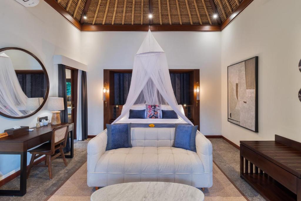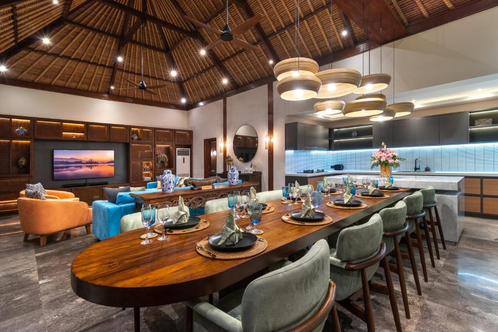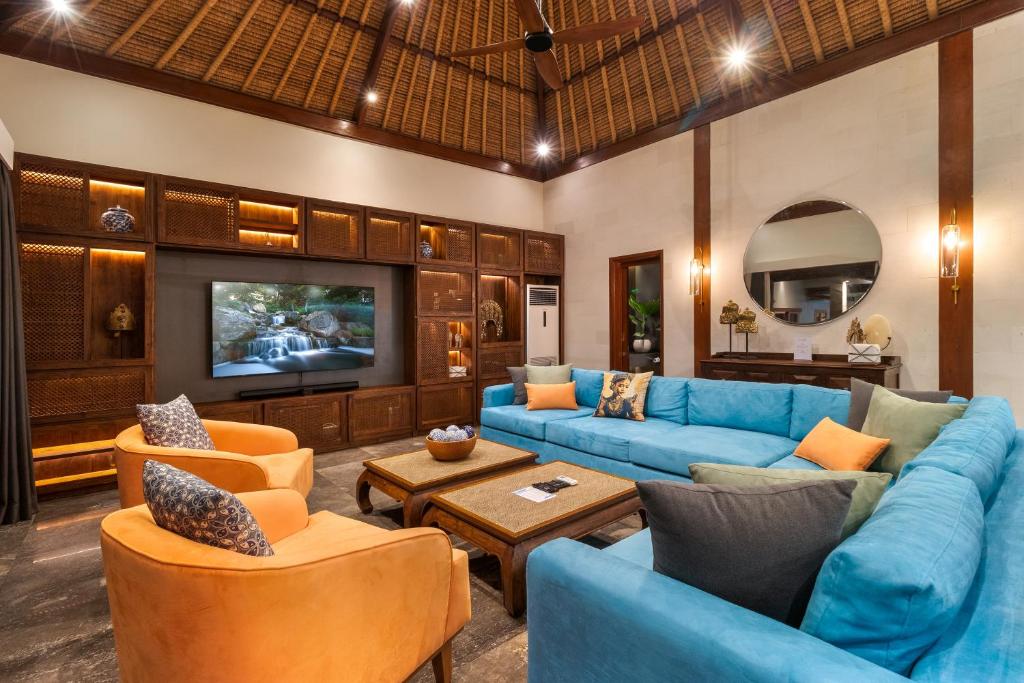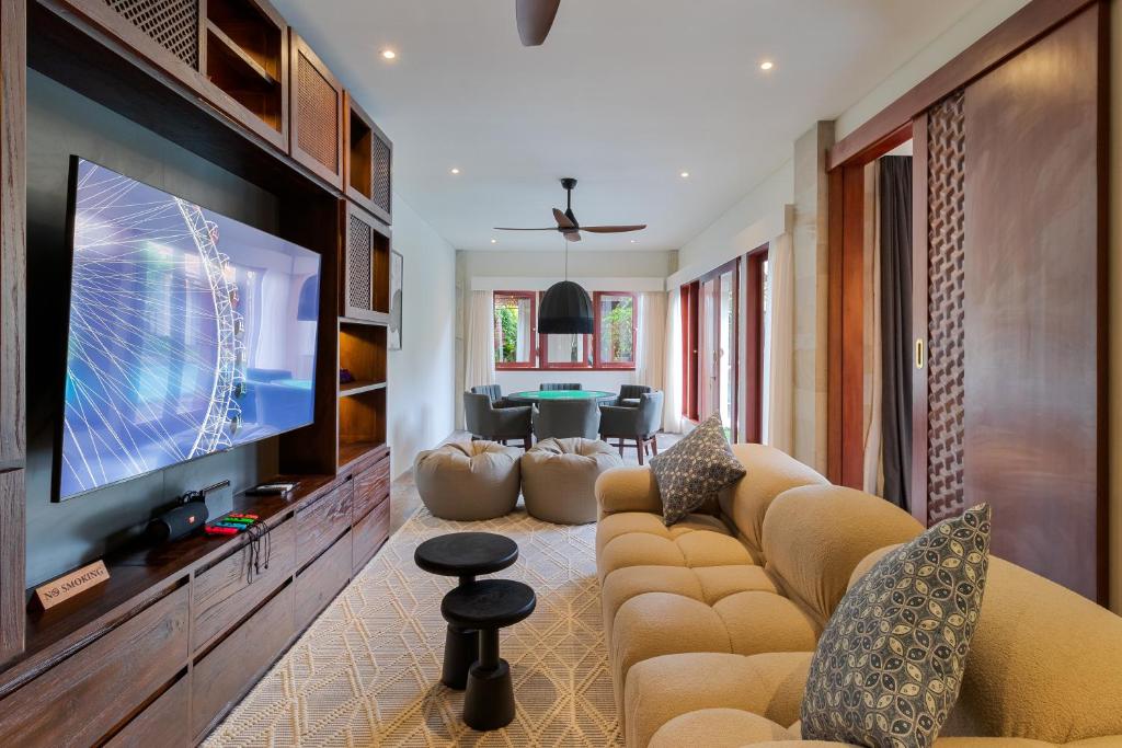 Each bedroom offers air conditioning, an ensuite bathroom, and luxurious bedding. The villa also has a media room, a gym, and plenty of cozy spots to unwind. Every detail is designed for comfort and convenience, creating an ideal home away from home in Bali.