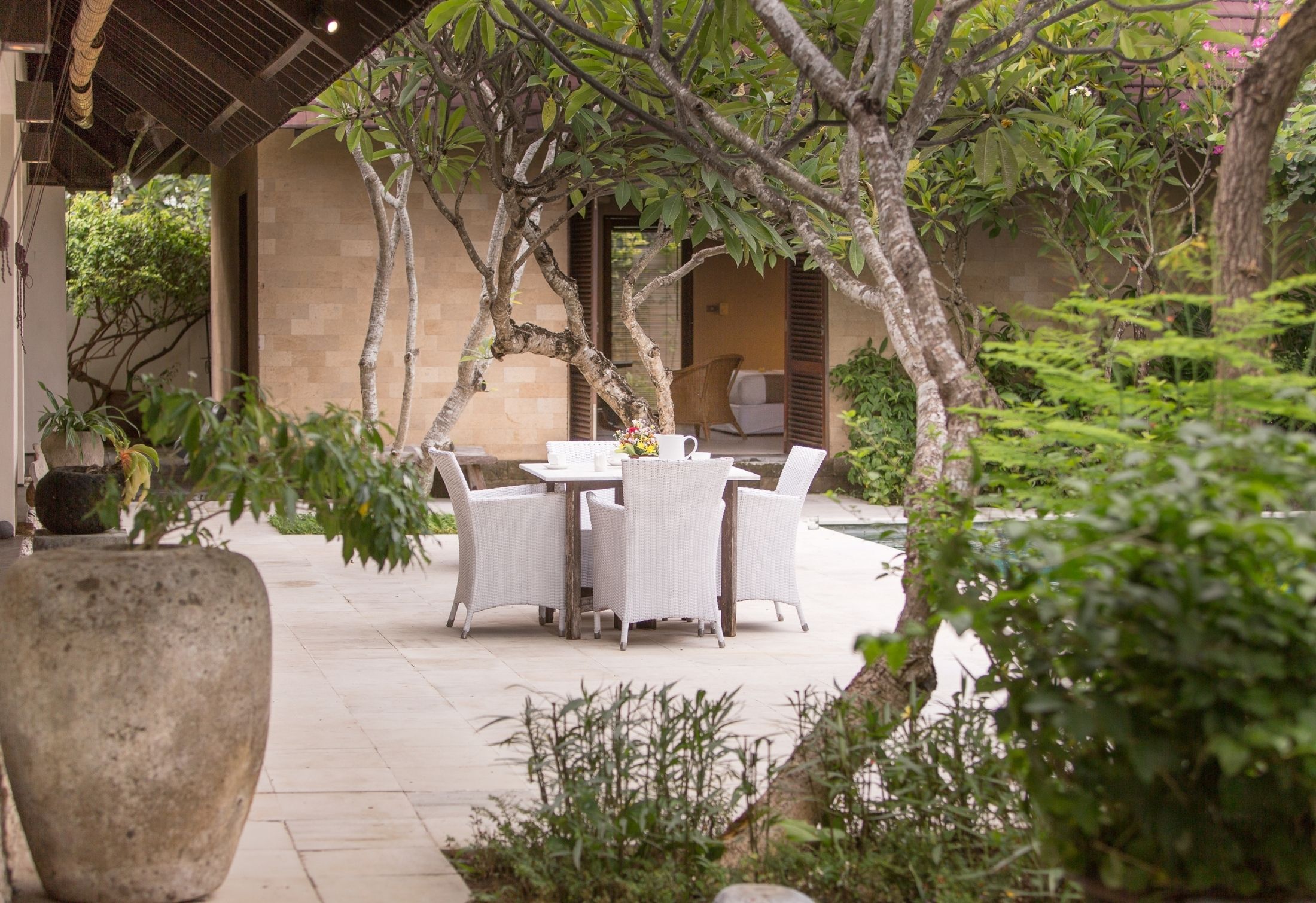 Upon entering Villa Roku, prepare to be captivated by its exquisite décor and tropical atmosphere, offering a serene escape from the hustle and bustle of Seminyak. This Balinese-style haven accommodates up to 6 guests, making it ideal for large families or groups of friends. Upon arrival, you’ll encounter a lush garden leading to one of the bedrooms, followed by an open living room and a fully equipped kitchen adjoining the master bedroom.